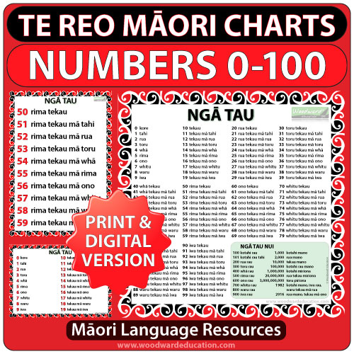 - Māori numbers 1-100 chart – Large Version: 1 per page